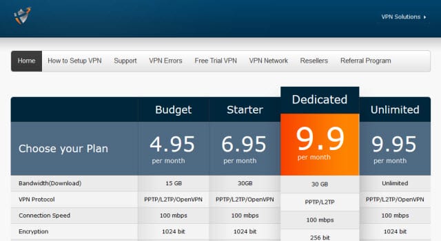 根据速度和 IP 数量,套餐从每月 13 美元到 100 美元不等。